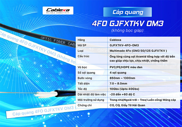 Cáp quang Multimode 4FO OM3 GJFXTKV chính hãng Cablexa giá tốt