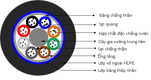 Chi tiết sản phẩm: Cáp thông tin sợi quang loại luồn cống phi kim hoặc kim loại