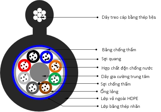 Cáp thông tin sợi quang loại treo hình số 8 kim loại hoặc phi kim loại